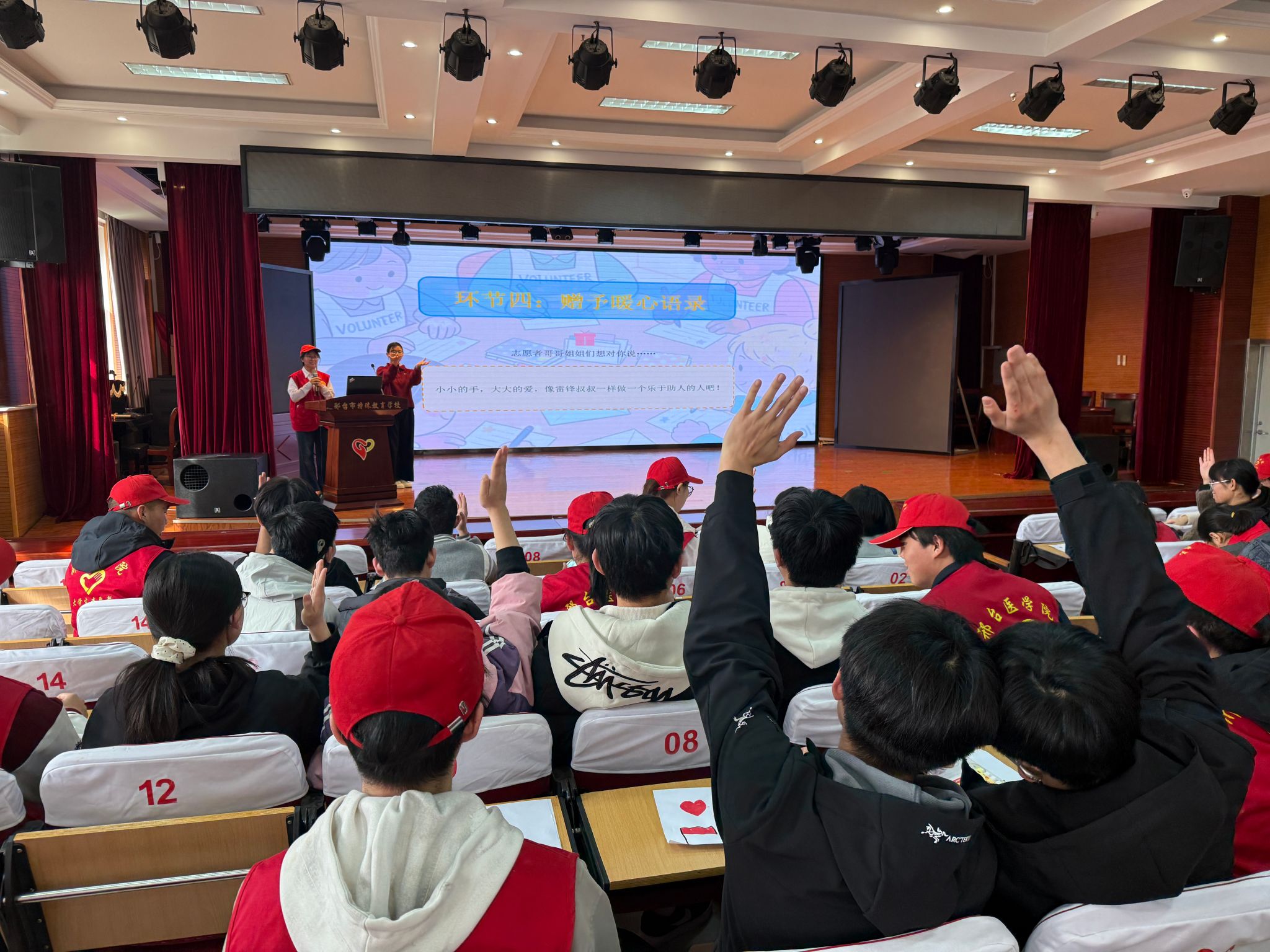 中医系走进邢台市特殊教育学校,开展“赓续雷锋精神 情暖特教校园”志愿服务活动。志愿者生动讲述雷锋同志的感人事迹,通过“判断雷锋行动”举牌小游戏、共绘雷锋形象等互动形式,让孩子们在轻松愉悦的氛围中感悟奉献与互助的深刻意义。志愿者还为孩子们送上画笔等礼物,写下暖心寄语,与孩子们亲切交流、温暖相拥,在欢声笑语中拉近了彼此距离。