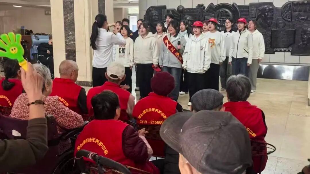 爱心互助社33名志愿者们来到学校老年养护实训中心开展了文艺汇演。经典歌曲合唱、独舞等10个节目轮番上演,同学们将爱心转化为实际行动,为老人们送去温暖与关怀,赢得了老人们的阵阵掌声。