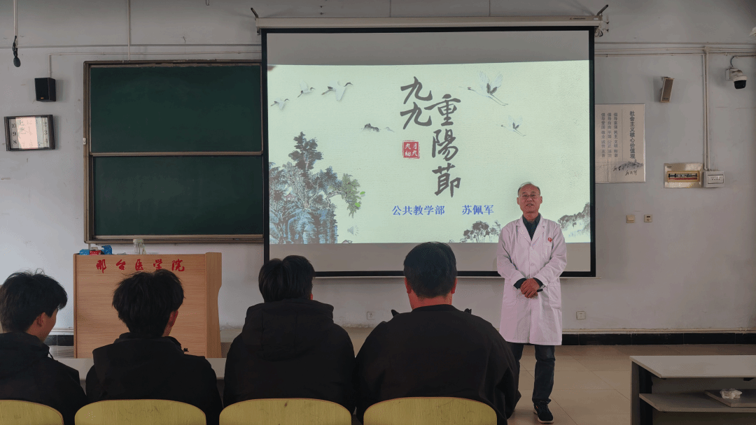 公共教学部举办了“情暖重阳 薪火相传”主题的讲座,200余名新生参与,讲座中,苏佩军老师借助丰富的历史典故与鲜活的生活案例,围绕重阳节所蕴含的文化内涵娓娓道来,引导学生体会敬老尊贤的传统美德。